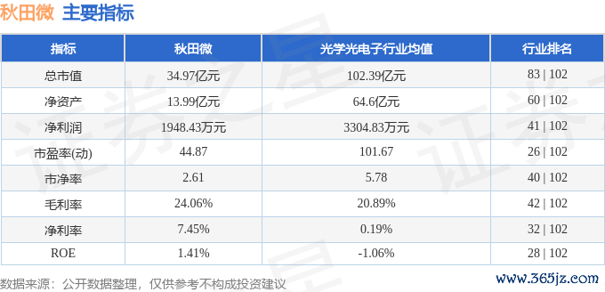 该股主要指标及行业内排名如下: