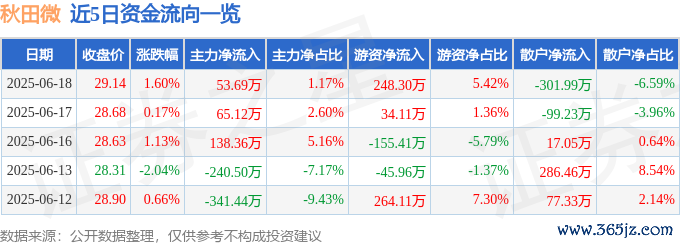 本站消息,截至2025年6月18日收盘,秋田微(300939)报收于29.14元,上涨1.6%牛达人,换手率1.32%,成交量1.58万手,成交额4580.71万元。